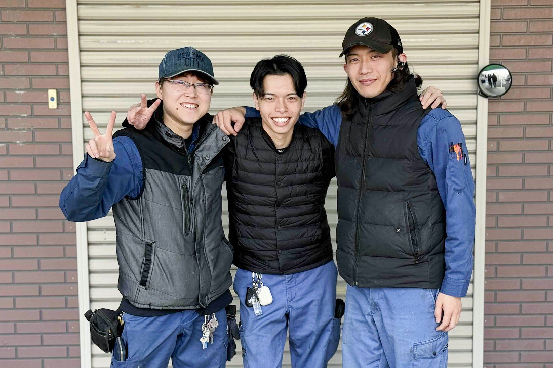 平均年齢20〜30代の若いスタッフが中心に活躍しており、「清掃業に活気を取り戻したい」という想いを胸に、チーム一丸で日々の現場に取り組んでいます。